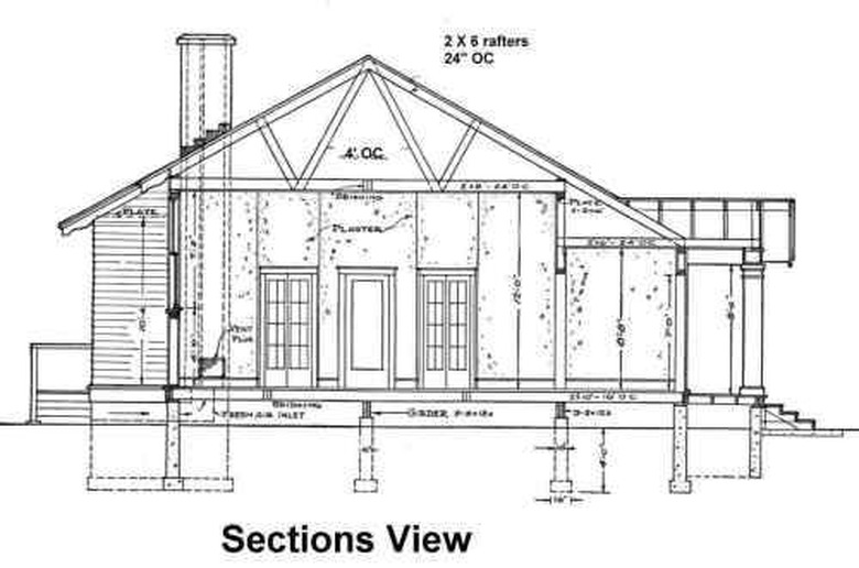Common scales are 1/2, 1/4 and 1/16. These reflect the fractions of an inch that correspond to feet in the full-scale dimensions. To read a blueprint with a scale ruler once the appropriate scale is determined, line up the zero mark with the beginning of the length to be measured. If the distance falls exactly on a line of the ruler, that is the measure in feet. Make sure the correct marks are being read, as most scale rulers have two scales per side for maximum efficiency. If the distance being measured does not fall exactly on a line, the exact measure will be the number of feet corresponding to the nearest line passed plus a certain number of inches. Determining the inches will require a second measurement. Before removing the scale ruler, first mark the appropriate foot line on the drawing. The first inch of the scale ruler is subdivided into twelfths, corresponding to inches. Line up the zero line with the mark representing the foot line of the first measurement, and use the detailed marking to find the number of inches. The full measurement will be the number of feet plus this number of inches. Even with this second step, using a scale ruler is much easier and faster than making complex conversions using math. It also minimizes the chance of error in the calculations. With a little practice, using a scale ruler becomes a simple but essential tool for the contractor and architect alike.